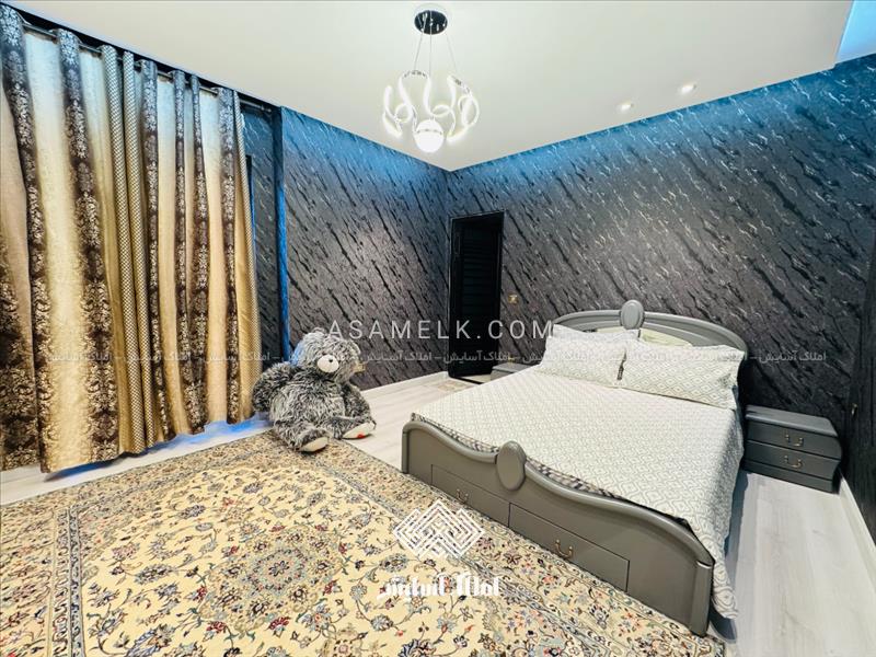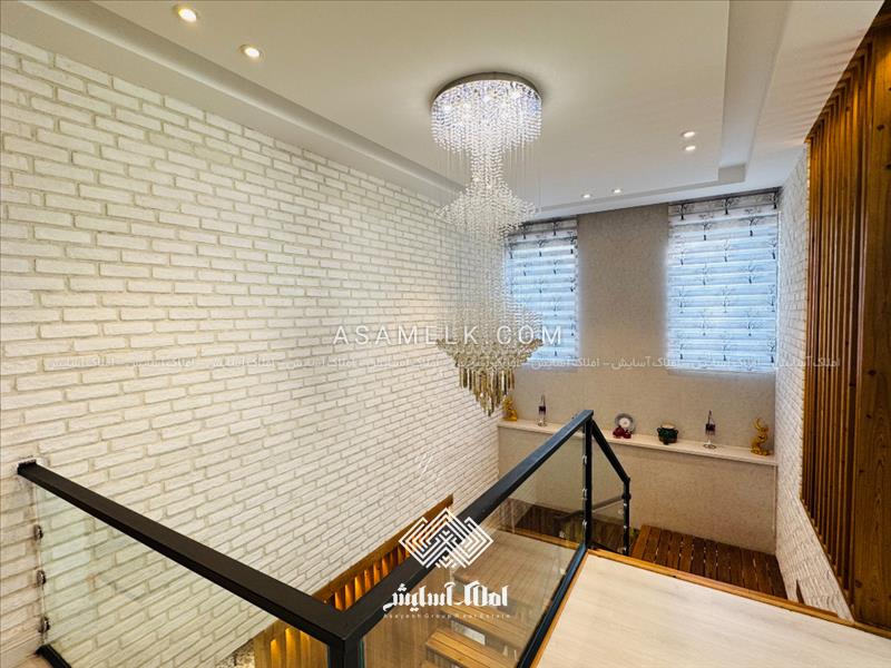 این باغویلا دارای 435 متر ویلای دوبلکس مدرن هستش که شامل : دو سالن پذیرایی دلباز که یکی از سالن ها بخش TV ROOM با چشمانداز زیبا به محوطه هستش ، آشپزخانه فولامکانات با جزیره و مطبخ مجزا ، متریال برند و طراحی خاص جلوهی ویژهای به فضای داخلی داده ، طبقه پایین به همراه یک خواب مستره ، در طبقه بالا سه خواب مستر دیگه وجود داره ، سالن پذیرایی مستقل ، تراس با ویوی فوقالعاده زیبا به محوطه ، آشپزخانهای کوچک اما مجهز ، همچنین آسانسور و پلههای چوبی + نور طبیعی عالی از ویژگیهای شاخص داخلی این ویلا هستن