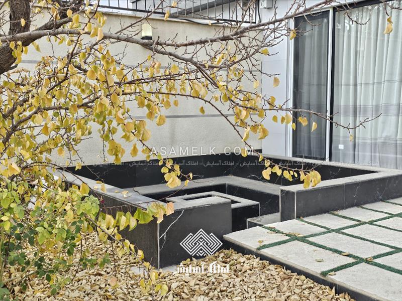 محوطهسازی بسیار دلنشین با استفاده از درختانمثمر و زینتی + کفسازی واشبتن و نورپردازی دیدنی