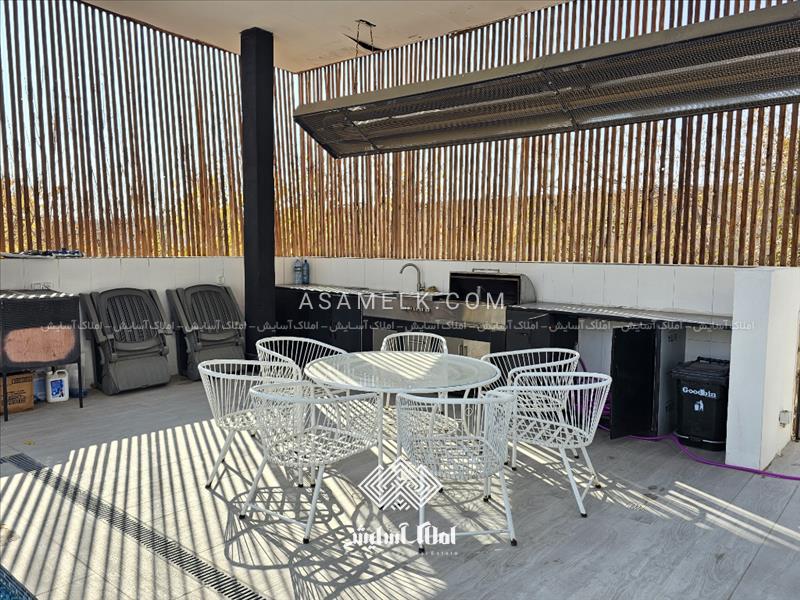 همچنین در مجاورت استخر ، آلاچیق مدرن به همراه باربیکیو و آبنما با ریزش آب در استخر قرار گرفته